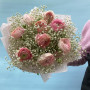 На фото букет из розовых ранункулюсов с белой гипсофилой. В составе: ранункулюс 9 шт, гипсофила 9 шт, дизайнерская упаковка 1 шт, атласная лента 1 шт, . Все цветы свежие и ароматные, букет красиво оформлен и отлично подходит для подарка. Доступна доставка цветов или самовывоз.